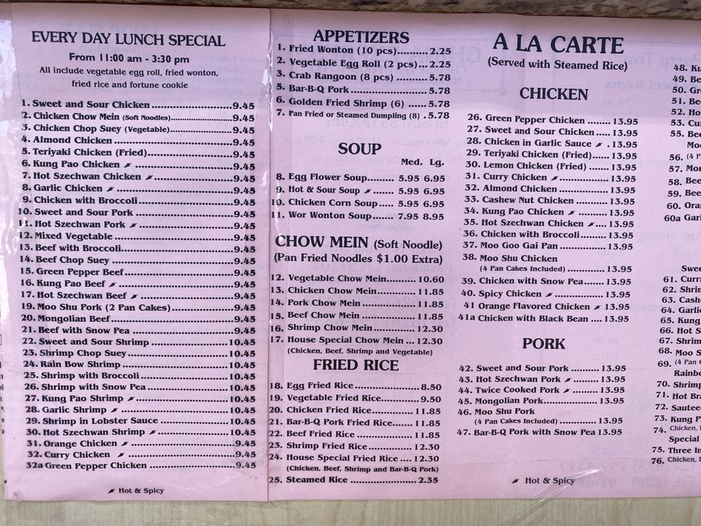 China Express is a Chinese cuisine gem located in Pasadena, CA. This unclaimed restaurant offers a wide range of dishes with many vegetarian options, making it a great choice for all diners. The menu includes appetizers like Spring Rolls and Fried Shrimp, soups like Egg Drop Soup and Hot & Sour Soup, and seafood options like Kungpao Shrimp and Scallop with Mixed Vegetables. Customers rave about the generous portions, affordable prices, and delicious flavors, with mentions of favorites like the house special fried rice and Mongolian beef. Despite its simple appearance, China Express delivers on taste and value, making it a go-to spot for authentic Chinese food in the area. Don't miss out on the friendly service and satisfying meals at this local favorite.